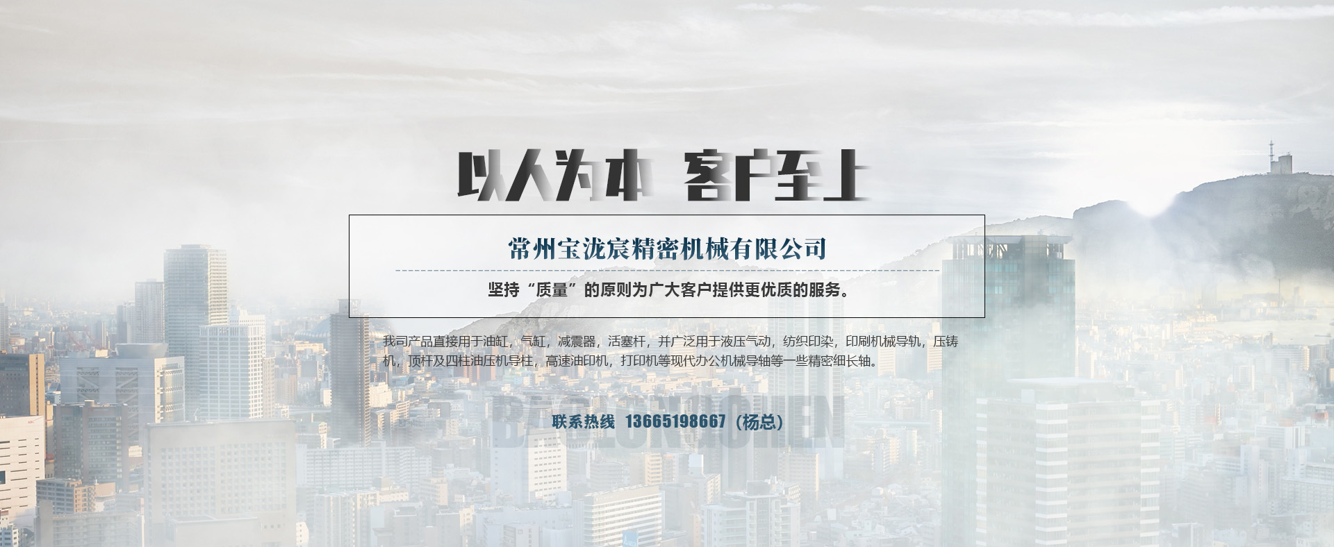 常州寶瀧宸精密機械有限公司主營活塞桿,缸筒,空心軸,調(diào)質(zhì)高頻軸,導柱立柱,傳動軸,哥林柱,直線光軸,刀軸等。擁有整條生產(chǎn)各類軸類的設備,生產(chǎn)的軸直線度高,表面光潔度好,硬度均勻。本公司專注生產(chǎn)精密細長軸采用精密冷拔,精磨和高精度拋光的先進工藝制造,各項技術指標均符合并超過標準。我司產(chǎn)品直接用于油缸,氣缸,減震器,活塞桿,并廣泛用于液壓氣動,紡織印染,印刷機械導軌,壓鑄機,注塑機導桿,活塞桿,頂桿及四柱油壓機導柱,傳真機,復印機,高速油印機,打印機等現(xiàn)代辦公機械導軸等一些精密細長軸。公司秉承“以人為本,客戶為上”的經(jīng)營理念,堅持“質(zhì)量”的原則為廣大客戶提供更優(yōu)質(zhì)的服務。歡迎各界客戶蒞臨指導。